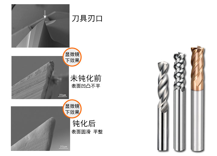 3.刃口毛刺導致刀具磨損、加工工件的表面也會變得粗糙,刀具鈍化后可以提高工件品質。